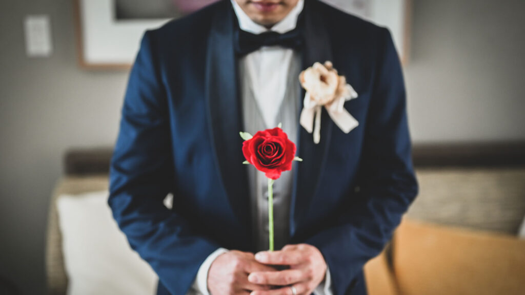 ハワイの結婚式に家族みんなに列席してもらうのが夢だったおふたり。いろんな情勢を見ながら待つこと2年…いよいよその夢が叶う日です。その日まで彼にこっそりウクレレを練習した彼女、そして毎年記念日に送っているバラを99本の花束にしてこっそり用意。お互いへのサプライズから大切な日がスタートしました。