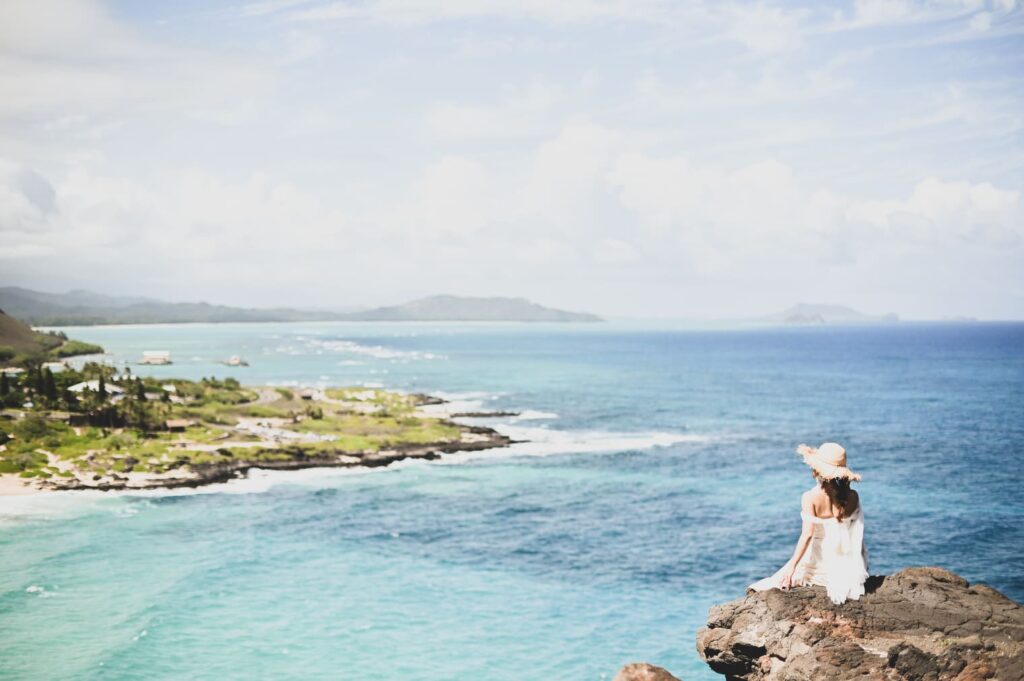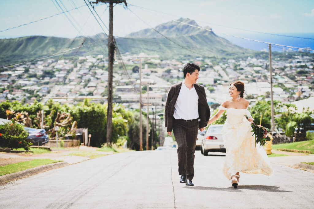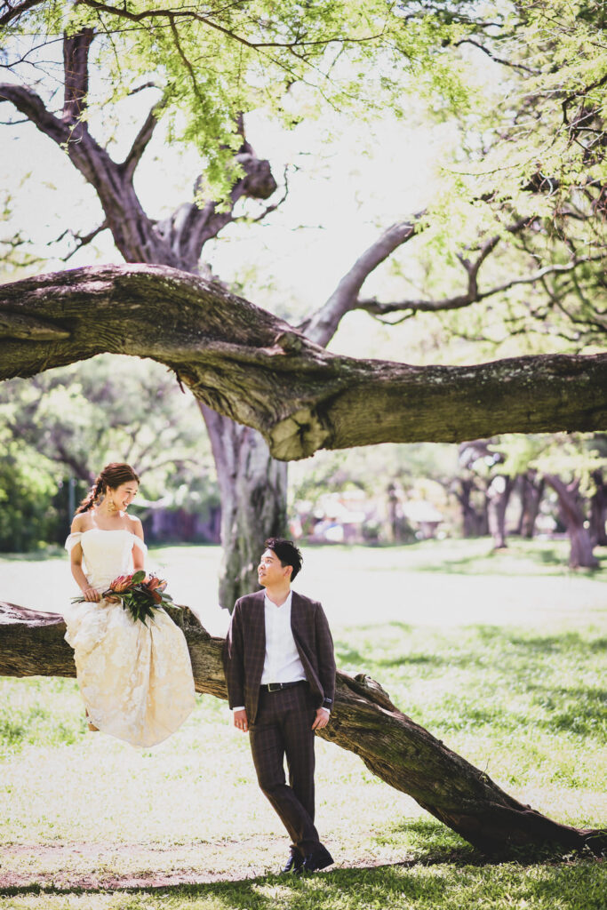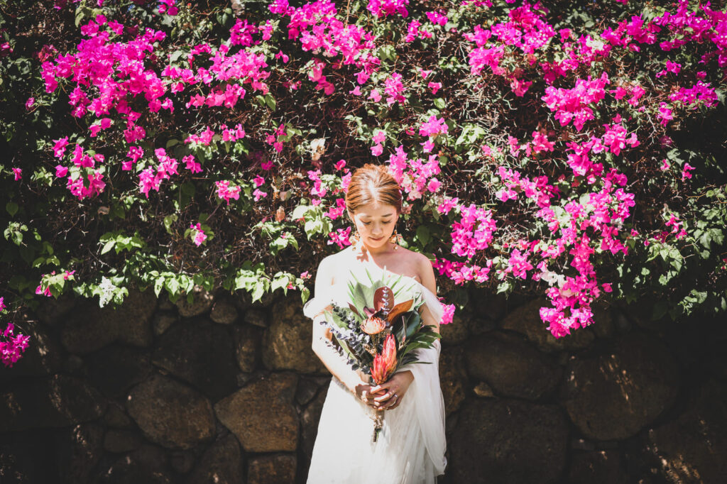 おしゃれなThe Laylowホテルのお部屋で撮影したり、カピオラニ公園やマカイピア、オールドパリなど人気撮影スポット巡り、移動中に見つけたキレイなブーゲンビリアとの1枚はまさにフォトジェニック。