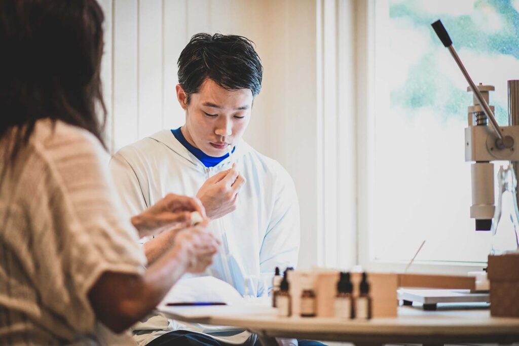 彼女想いの彼は、彼女の支度中こっそりサプライズの準備。アロマセラビストの方にご協力頂き、彼女の好きそうな香りをチョイスして、「ふたりの結婚式の香り」を作ります。その香りは移動中の車内などでほのかに香るように演出。香りをかぐたびにふたりの大切な日を’思い出せるように・・・