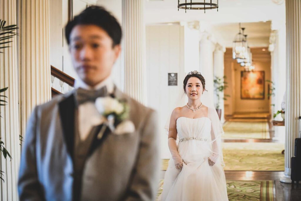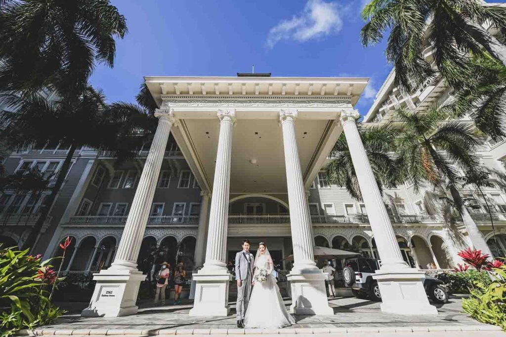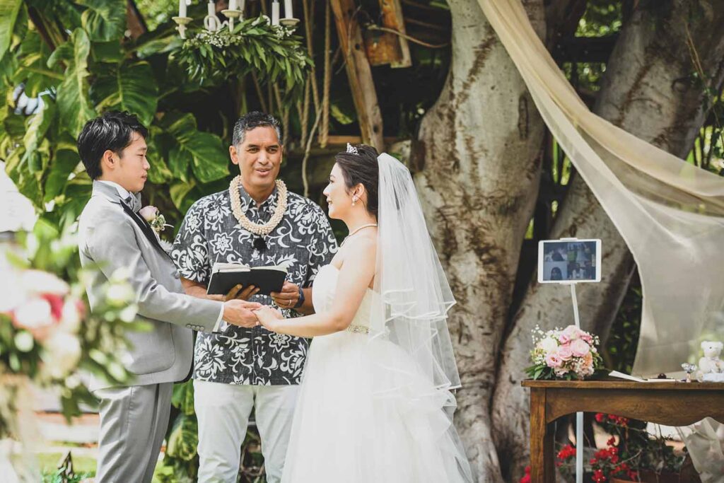 コロナ禍でいろんな不安がある中のハワイ渡航。参列するはずだったゲストには、ライブ配信をしてスクリーン越しに見守って頂きました。