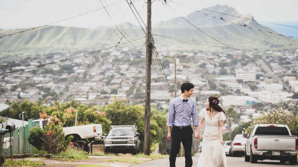 ハワイが大好きな彼女。ハワイには興味はないけど彼女の夢を叶えてあげたい彼。ちょっとタイプの違うふたりだけど一緒にいるとぴったり合っている、そんなふたりのウェディングです。
