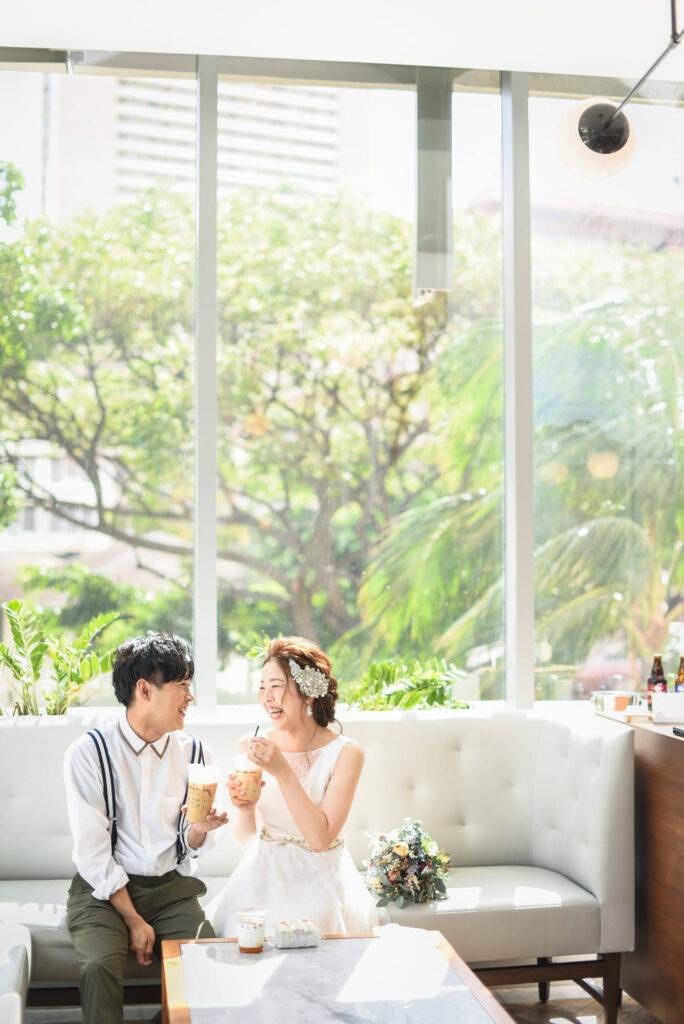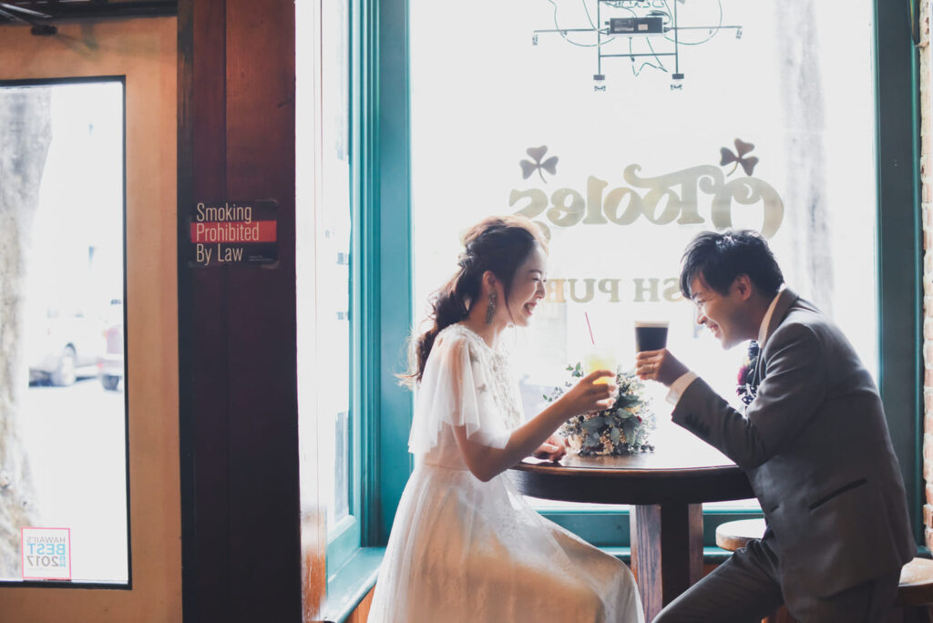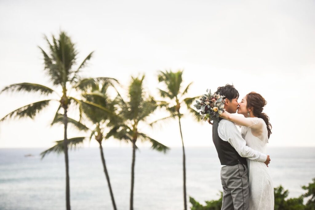 ハワイらしい雰囲気を楽しむうちに、おふたりの緊張もどこへやら。